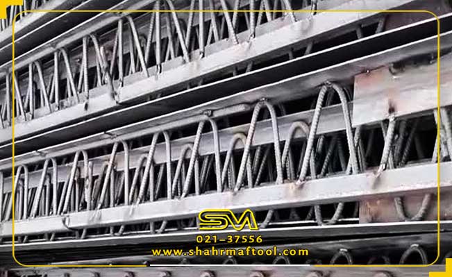 بال تحتانی فولادی: این بخش که معمولا از ورق فولادی خم کاری شده ساخته می شود، وظیفه تحمل بار سقف را بر عهده دارد و به عنوان قالب دائمی عمل می کند.